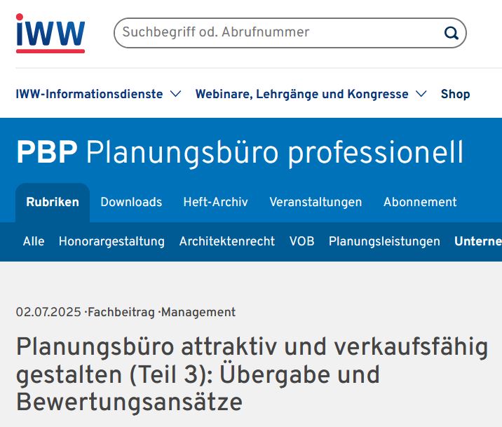 Seit Jahrzehnten beraten wir Architektur- und Ingenieurbüros. Dabei ist ein umfangreicher Erfahrungsschatz entstanden, den wir gerne teilen. In zahlreichen Fachartikeln und Veröffentlichungen haben wir zentrale Fragestellungen aus unserer täglichen Praxis aufgegriffen.
